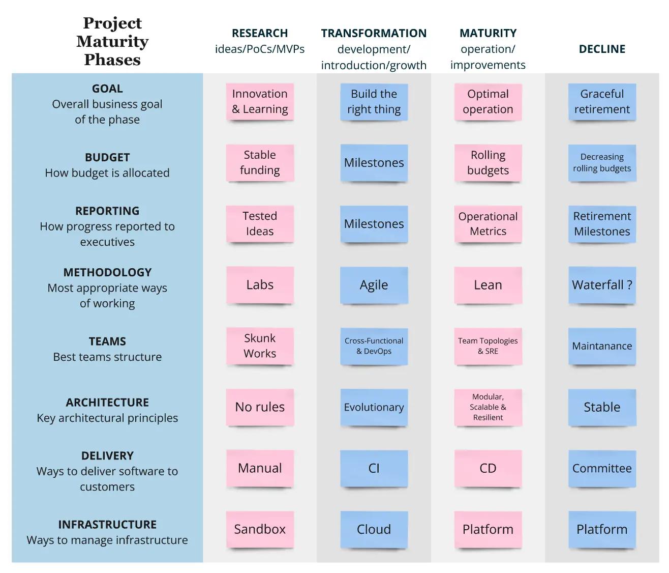 Each phase requires a different technical approach, people management and overall organizational structure.