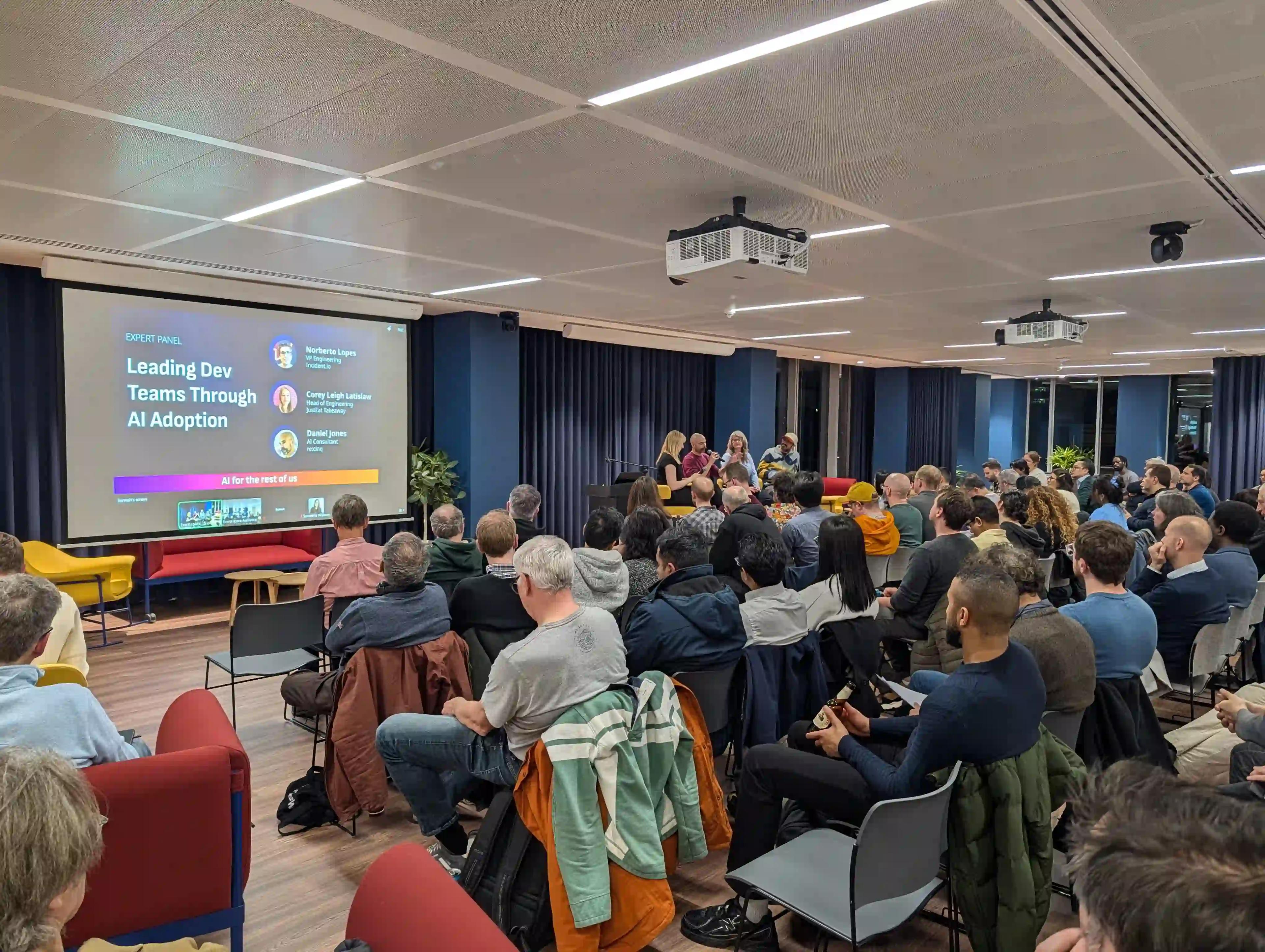 Our Head of Product Daniel Jones and the expert panel at AI for the Rest of Us — a monthly London meetup bringing together engineering leaders navigating AI adoption — spent significant time on this. Norberto Lopes, VP Engineering at incident.io, and Corey Leigh Latislaw, Head of Engineering at JustEat Takeaway, joined the panel. Adoption gets treated as the finish line. In practice, it's where a new set of problems becomes visible.
